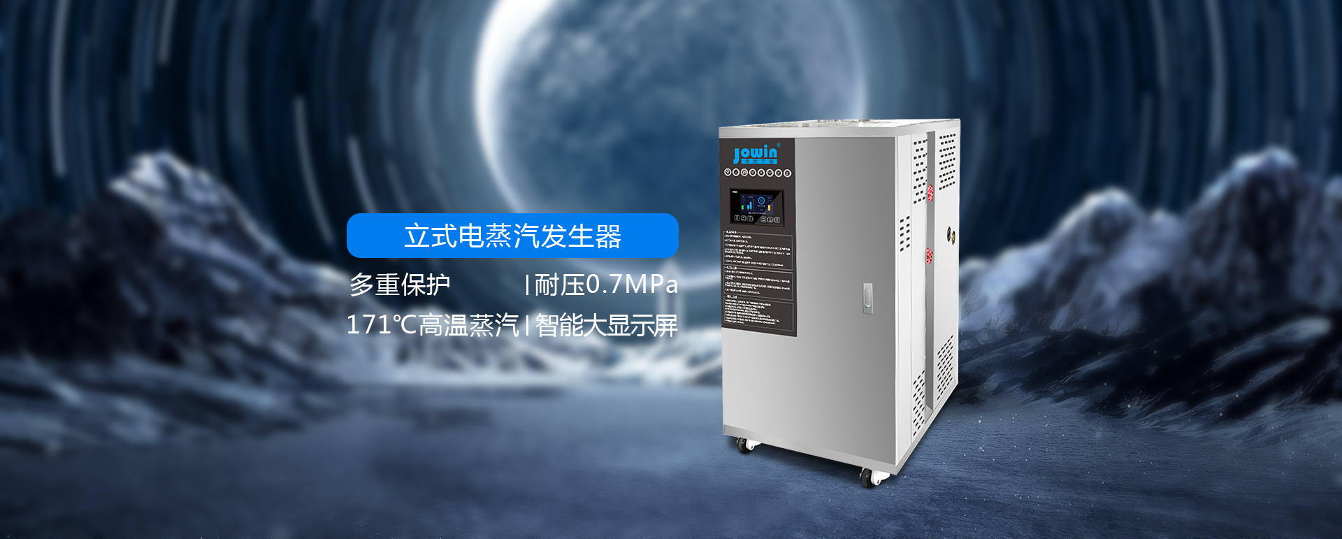 蒸汽量:25~100kg/h 尺寸:600*600*1050mm 蒸汽壓力:0.7MPa壓力保護,大顯示屏,三檔電熱可調,自動進水,體積小,安裝方便,無噪音,節能環保,可單臺或多臺并聯安裝,蒸汽發量大